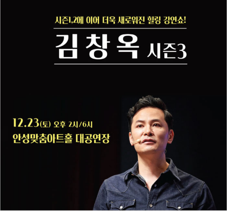 시즌 1,2에 이어 더욱 새로워진 힐링 강연쇼! 김창옥 세 번째 토크콘서트가 경기도 안성, 군포에서 열립니다. 답답한 가슴을 시원하게 뚫어주는 토크 명인! 김창옥 토크 콘서트에 참여를 원하시는 분들은 아래에서 바로 예매하세요.