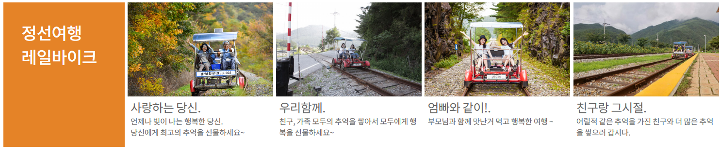 바로 주변의 경관을 보면서 레일바이크를 타는것이죠~ 타는것에서 끝나지 않고 주변의 무엇이 있는지 관광명소도 둘러보고 맛집을 찾아 맛집여행도 하는...